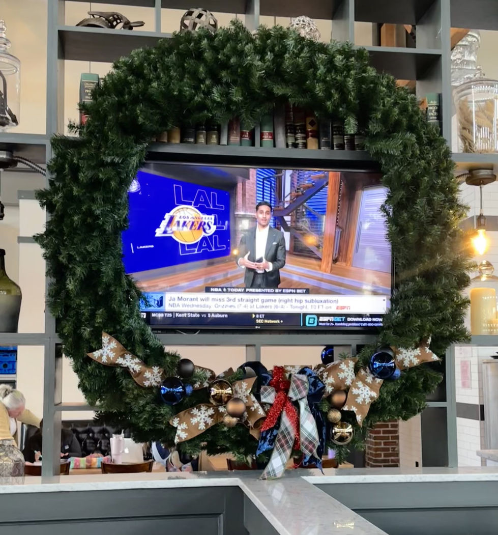 The Ultimate Holiday makeover! From the arched entry wreath, to the cashmere goat, no detail was left untouched. Multiple decorated trees, wreaths, and even details added to the bar chairs. The restaurant received touches that went beyond the owner's request to bring the Holiday Season to life for its patrons.